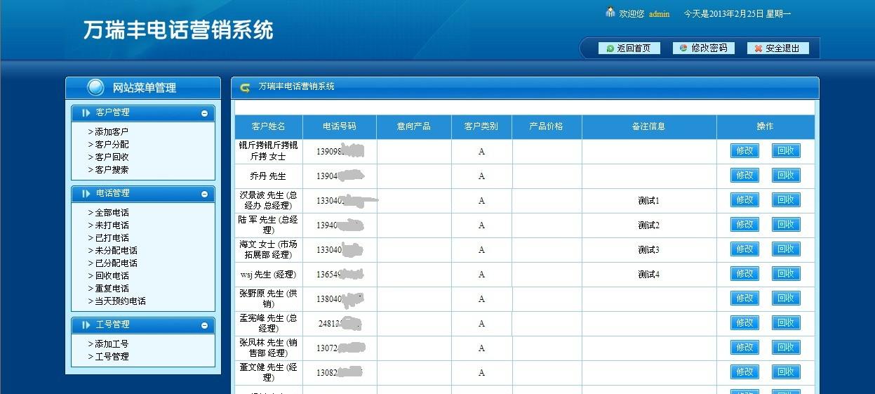 沈阳万瑞丰集团成功与我们签约制作万瑞丰电话营销OA系统。